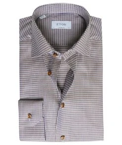 Refine your professional wardrobe with the Eton houndstooth shirt. Expertly tailored to a contemporary fit and crafted in the label’s signature twill cotton, the shirt offers a contoured silhouette and exceptional drape and lustre. Featuring a spread collar, French placket and adjustable cuffs, whilst the houndstooth pattern creates a wonderful depth of character and timeless aesthetic.