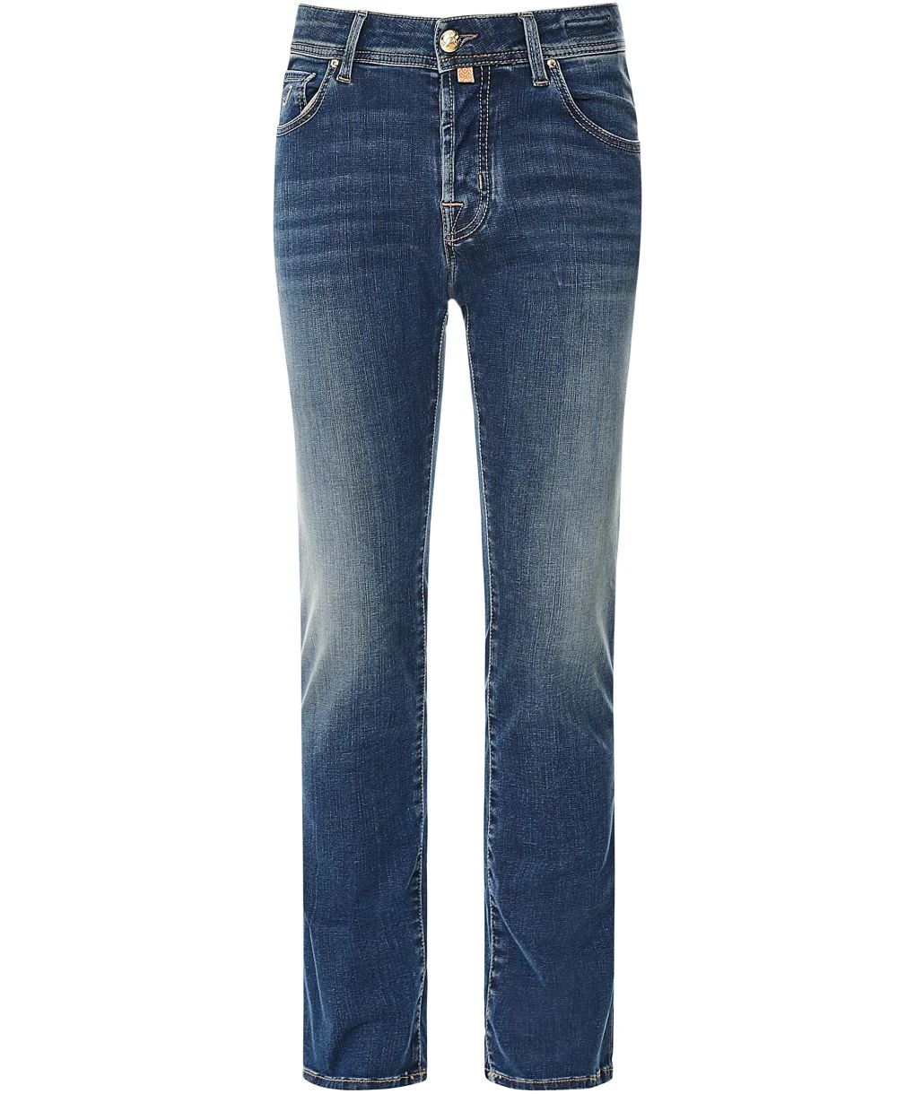 The Jacob Cohen Nick jeans are the perfect everyday option. Crafted in Italy using the finest sourced denim, the jeans are tailored to a slim fit with stretch offering a modern silhouette and superb shape retention. Featuring a button fly, classic five pocket design and subtle fading, whilst all Jacob Cohen jeans come complete with a complimentary pocket square for signature appeal.