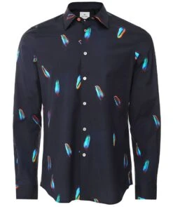 Lend your shirting breezy character with the Paul Smith Feather shirt. Expertly cut to a tailored fit and crafted in premium cotton, the shirt offers a super soft handle and contoured silhouette. Featuring a pointed collar, buttoned cuffs and sleek French placket, whilst the feather print makes for a charming appearance. The Paul Smith shirt is complete with a signature top pink button for an iconic finishing touch.